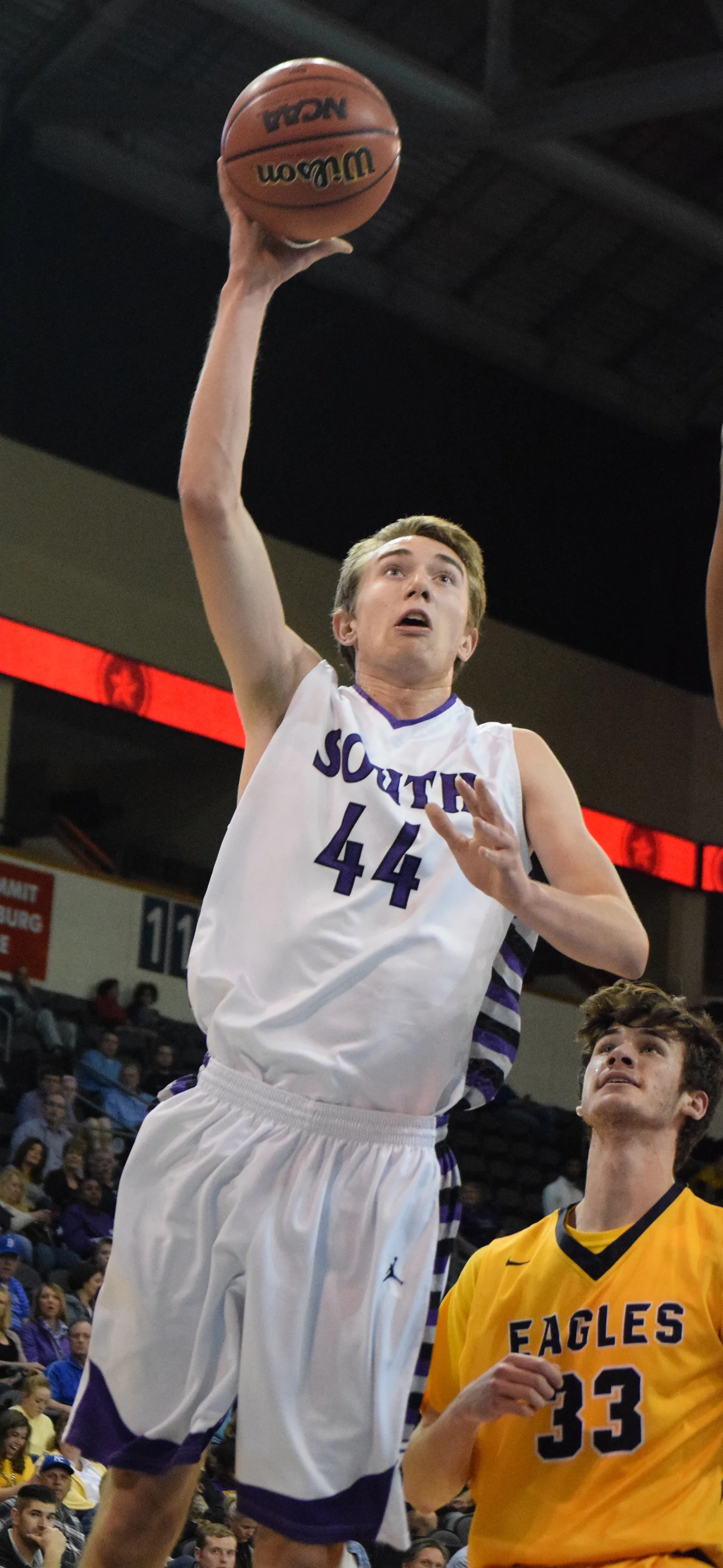 Park Hill South senior forward Ryan Welty goes up with a shot in a Class 5 sectional loss against Liberty North on Wednesday, March 9 at the Silverstein Eye Centers Arena in Independence, Mo.
