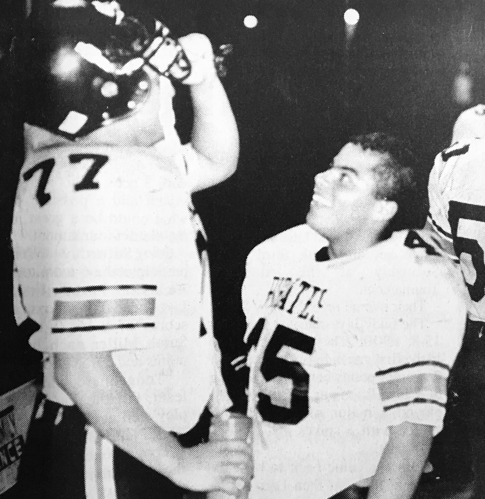 Willie Smith, Sr., seen in this 1994 wearing No. 45 and talking with teammate Randy Wishon, died at the age of 38 in November of 2015.