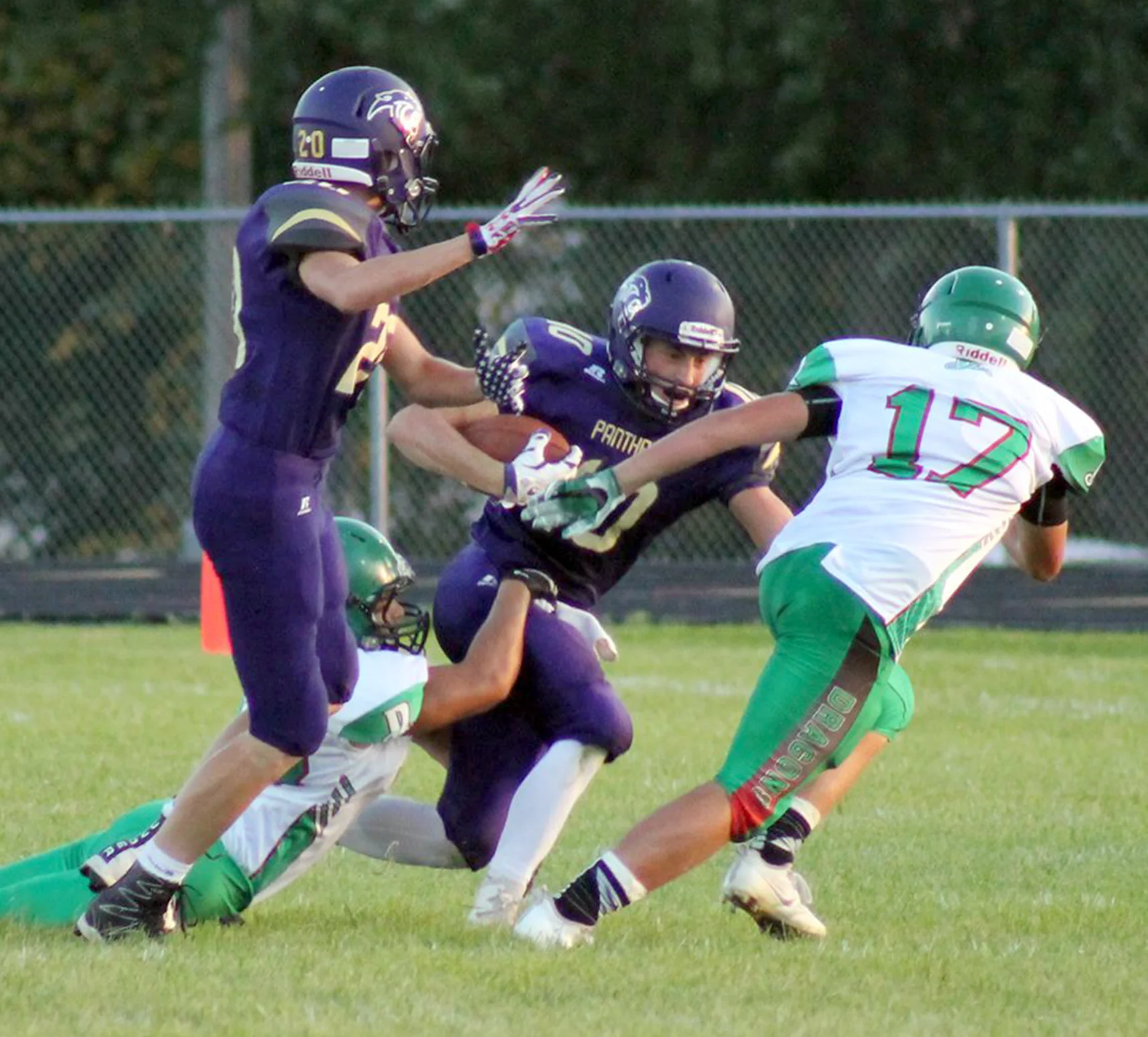 Mid-Buchanan gave up some big plays but also cashed in on the game’s biggest play in a KCI Conference opener Friday, Sept. 2 in Dearborn, Mo.
