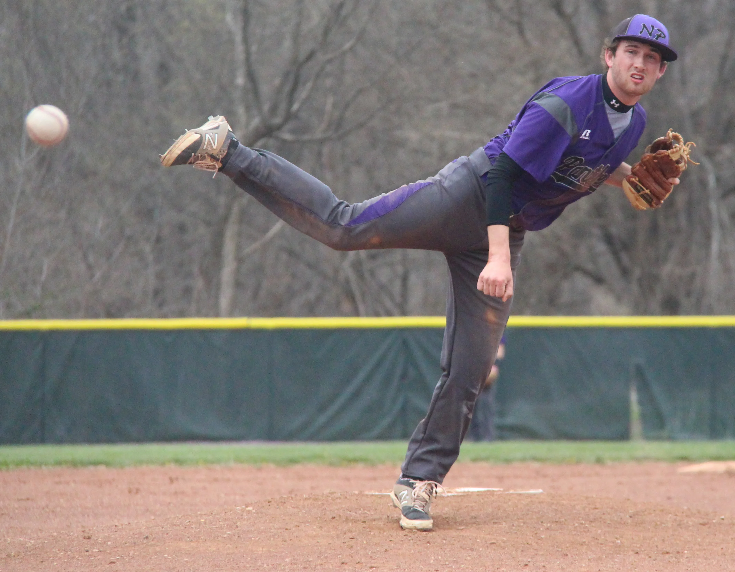 North Platte senior Blake Toliver delivers a pitch against West Platte on Wednesday, March 30 at Dean Park in Dearborn, Mo.