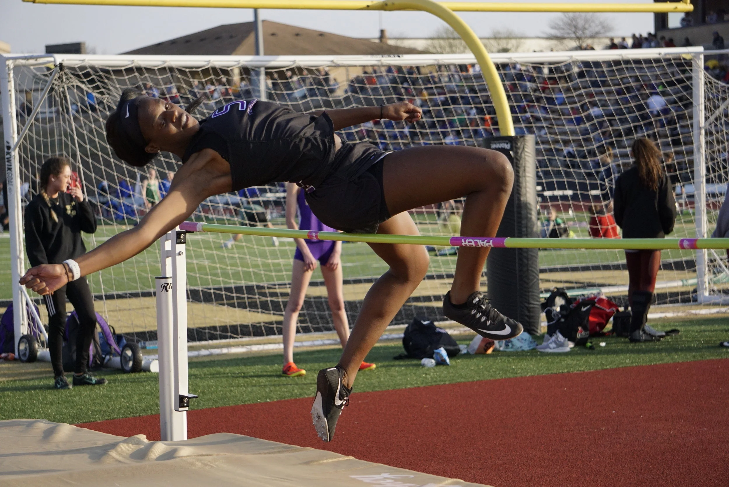 Park Hill South’s Alecia Westbrook won the high jump competition with a leap of 5 feet, 2 inches during the Kearney Invitational held on Friday, April 5 at Excelsior Springs High School due to construction at Kearney High School.