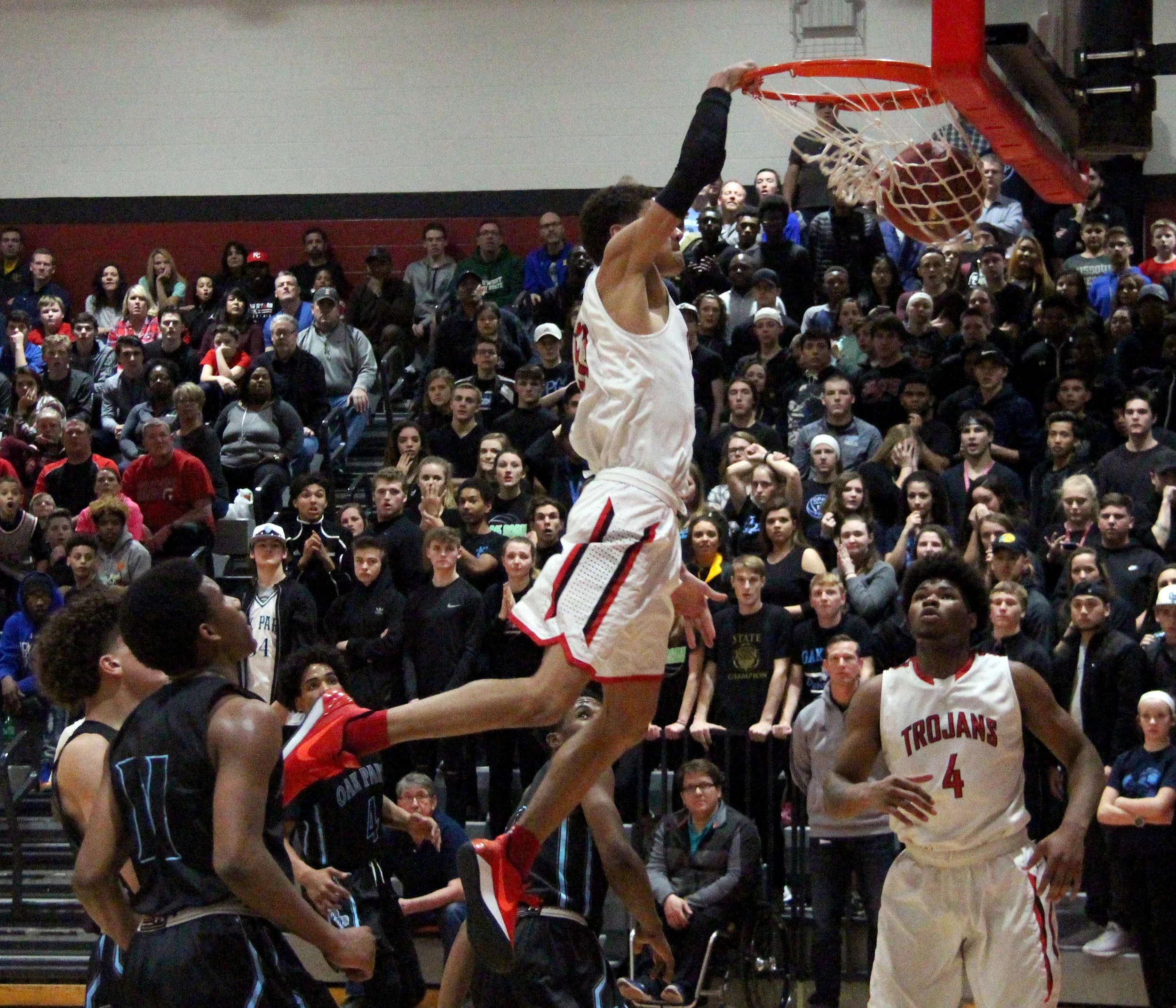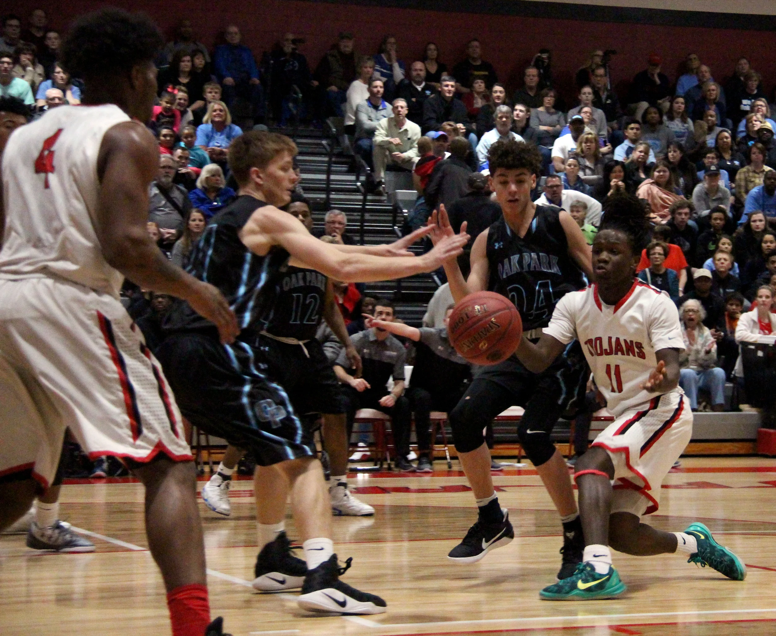 Ronnie Bell threw down an emphatic dunk at the end of each half, punctuating the Trojans’ 64-41 blowout of Oak Park in the Class 5 District 16 title game on their home floor. The Northmen took an early lead but couldn’t contain a multi-pronged offense that attacked from all angles.