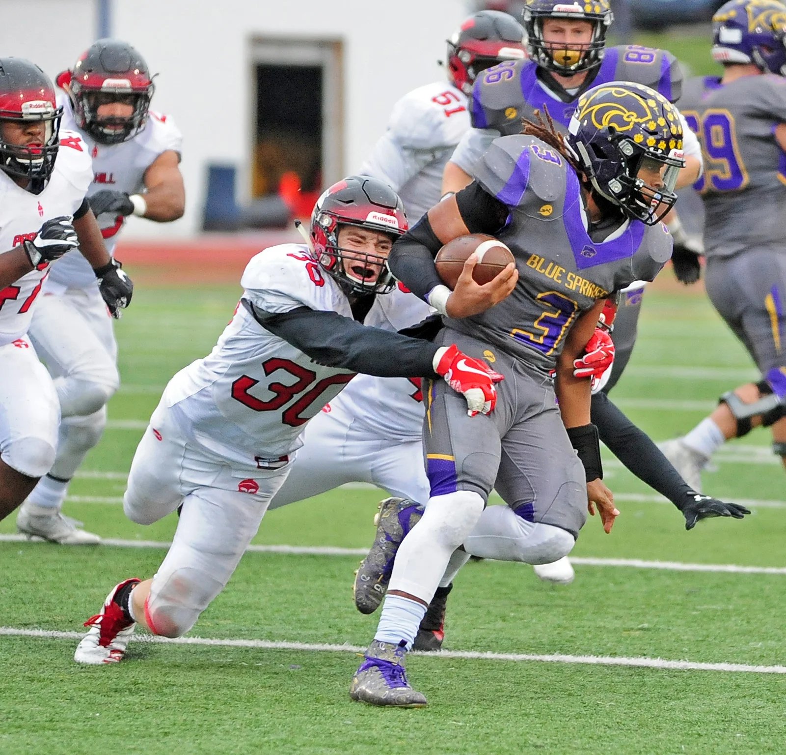 senior running back Dorian Clayton ran for 100 yards or more in nine of the final 10 games, including a career-high 332 in a Class 6 District 4 semifinal win over Lee’s Summit. He finished with 111 against Blue Springs, but Maples completed just 11 of 25 passes for 199 yards — a good chunk coming late with Blue Springs holding a 34-6 lead.
