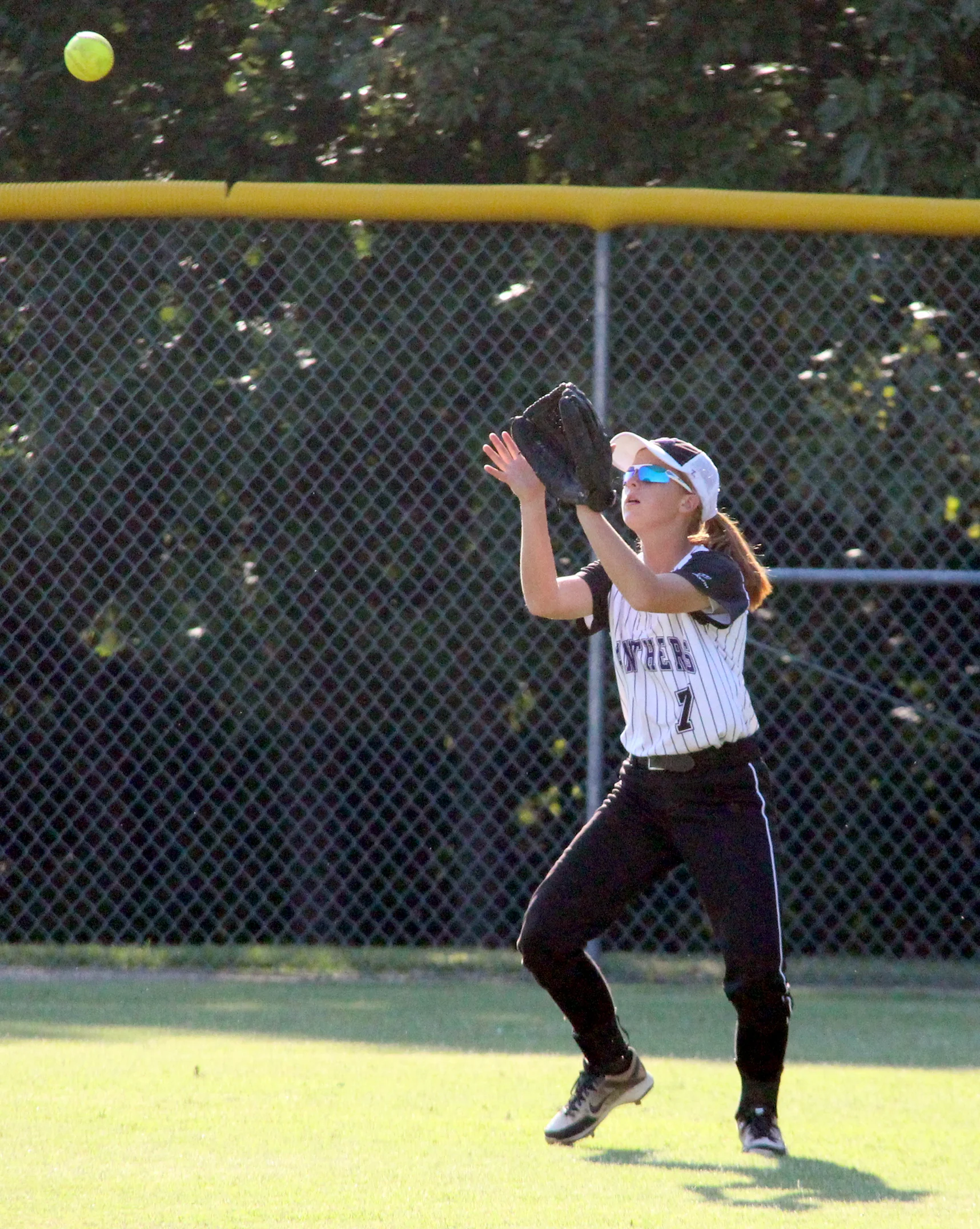 Park Hill South freshman outfielder Leslie Callahan prepares to make a catch against Truman on Thursday, Sept. 22 at Park Hill South High School in Riverside, Mo.