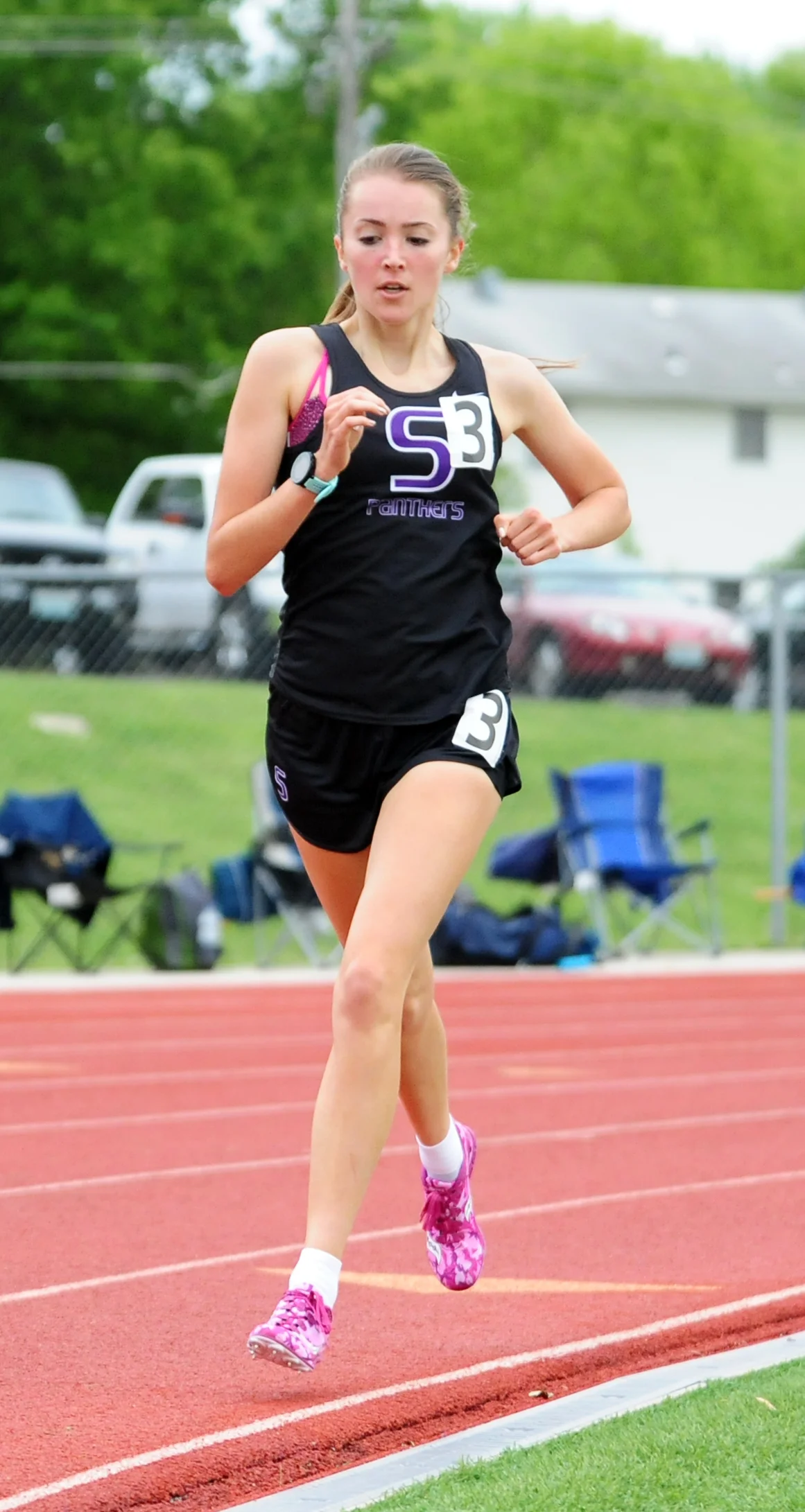 Park Hill South junior Emma Roth runs a curve in the 1,600 on the way to a school record time.