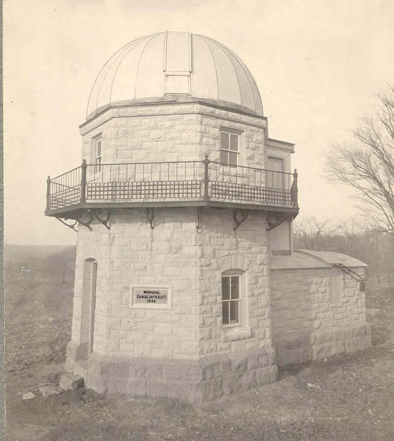 The Charles Smith Scott Memorial Observatory was built in 1896 and stood alone for more than 100 years on the hill behind Mackay Hall. The stone building featured an iron catwalk which became a prominent part in the legend of its haunting.