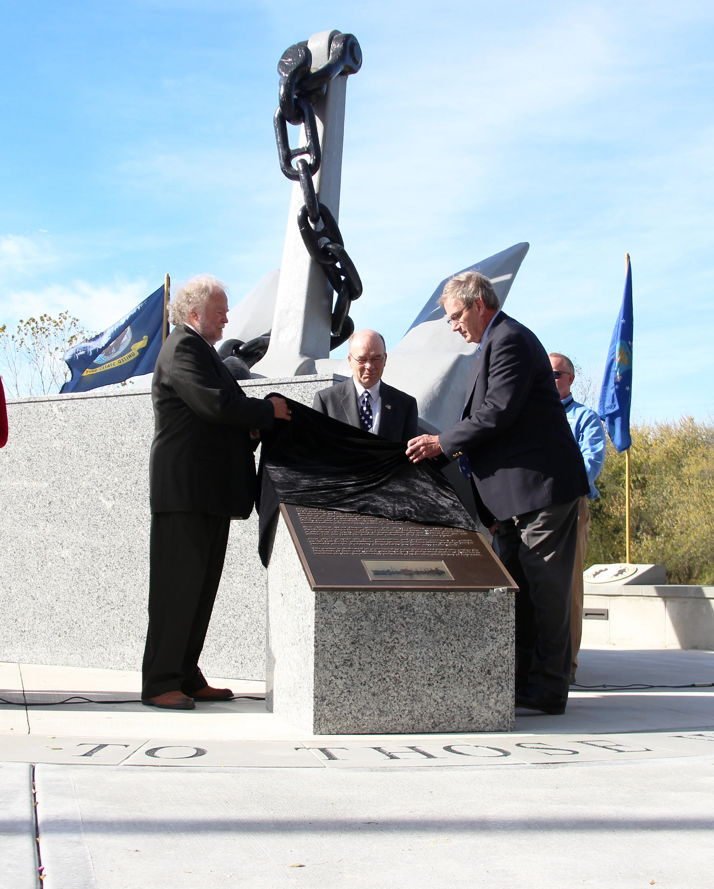 Platte County circuit judge James Van Amburg and Rev. Michael Lazio of Bethel House of Prayer were keynote speakers and helped Offutt unveil the previously commissioned bronze plaque containing a history the two ships named USS Platte.
