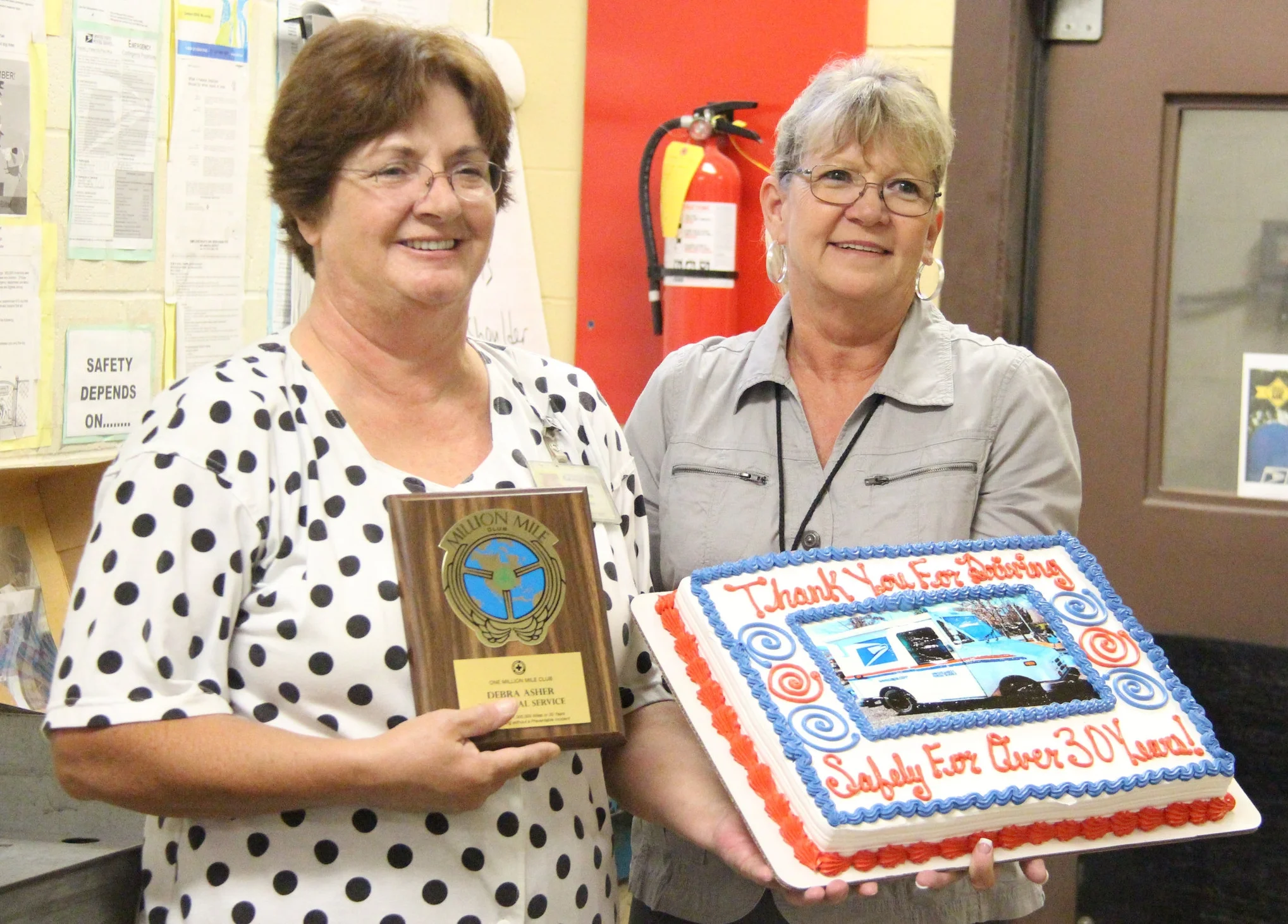Platte City Post Office postmaster Marla Eschbacher presented Asher with a National Safety Council “Million Mile Award” in a small ceremony Friday, June 30. The award is given to workers with driving as a daily requirement who have logged more than a million miles or gone 30 or more years without an accident.