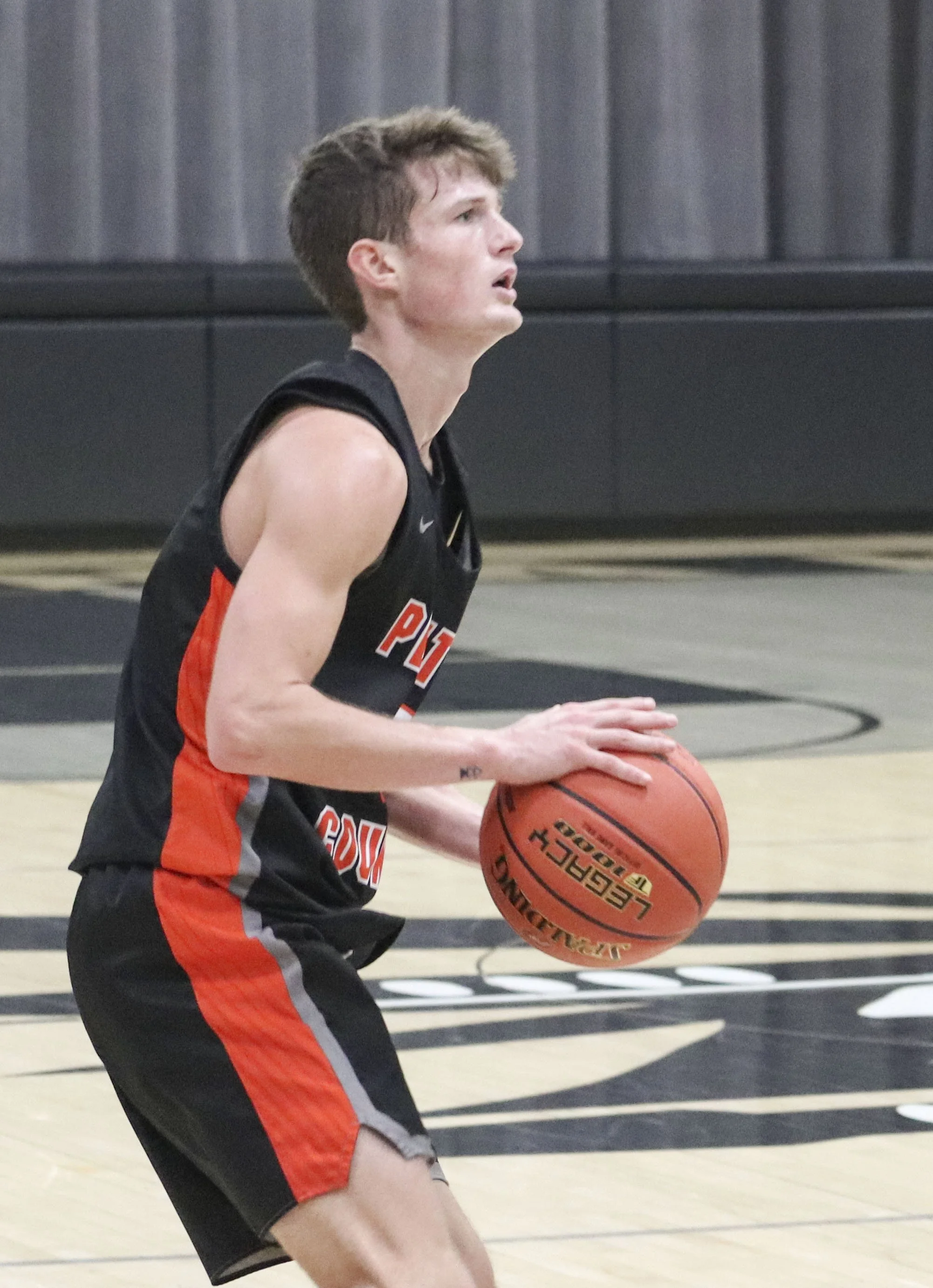 Platte County senior Jace Trimble, above, stuffed the stat sheet with 16 points, five assists and seven steals in the Pirates 66-39 win over Kearney on Dec. 17.