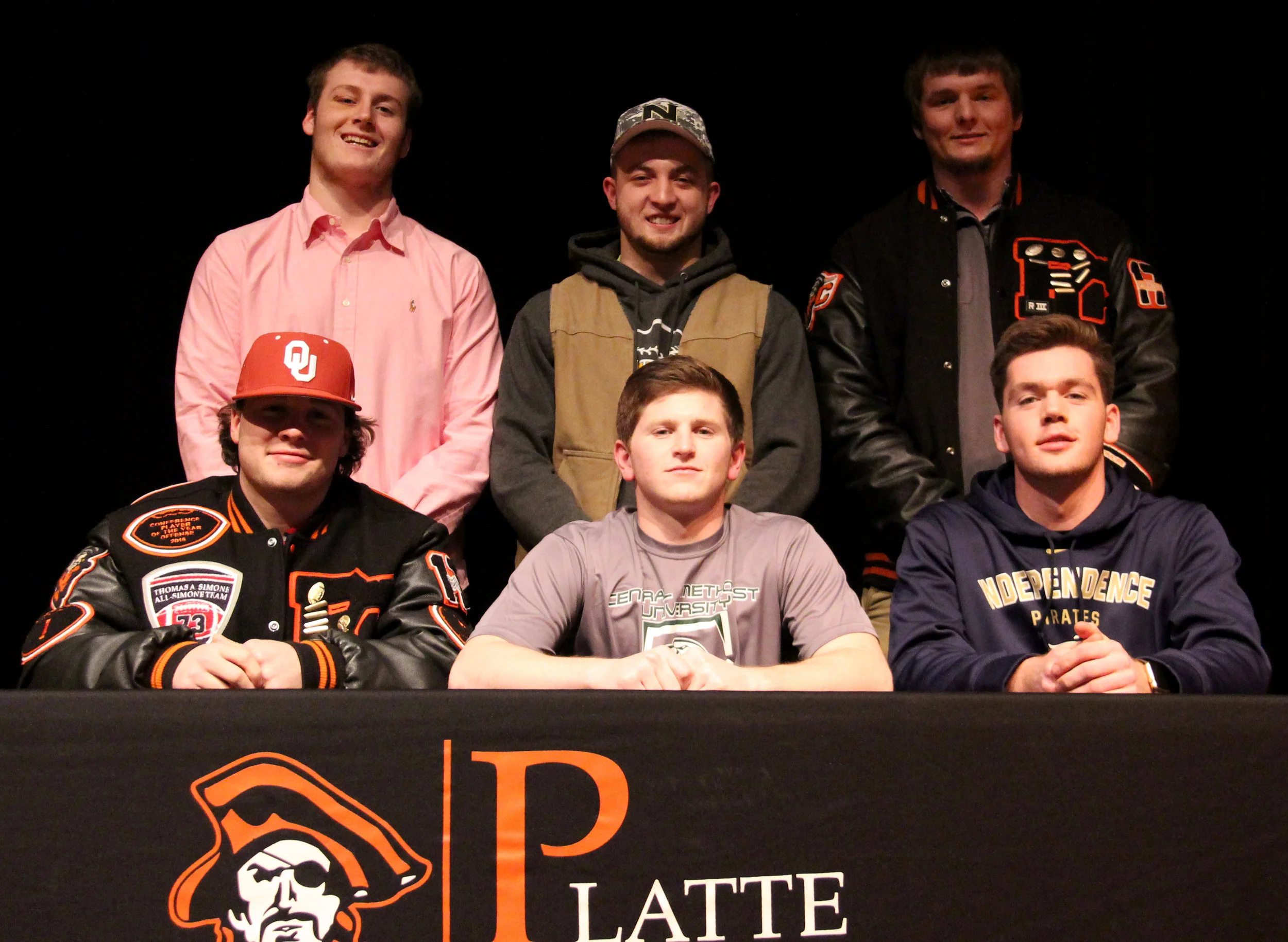 Platte County’s large senior class for this season now has seven committed to play at the next level. All four signing Wednesday earned All-Suburban Conference Blue Division honors after their junior season with the Pirates.