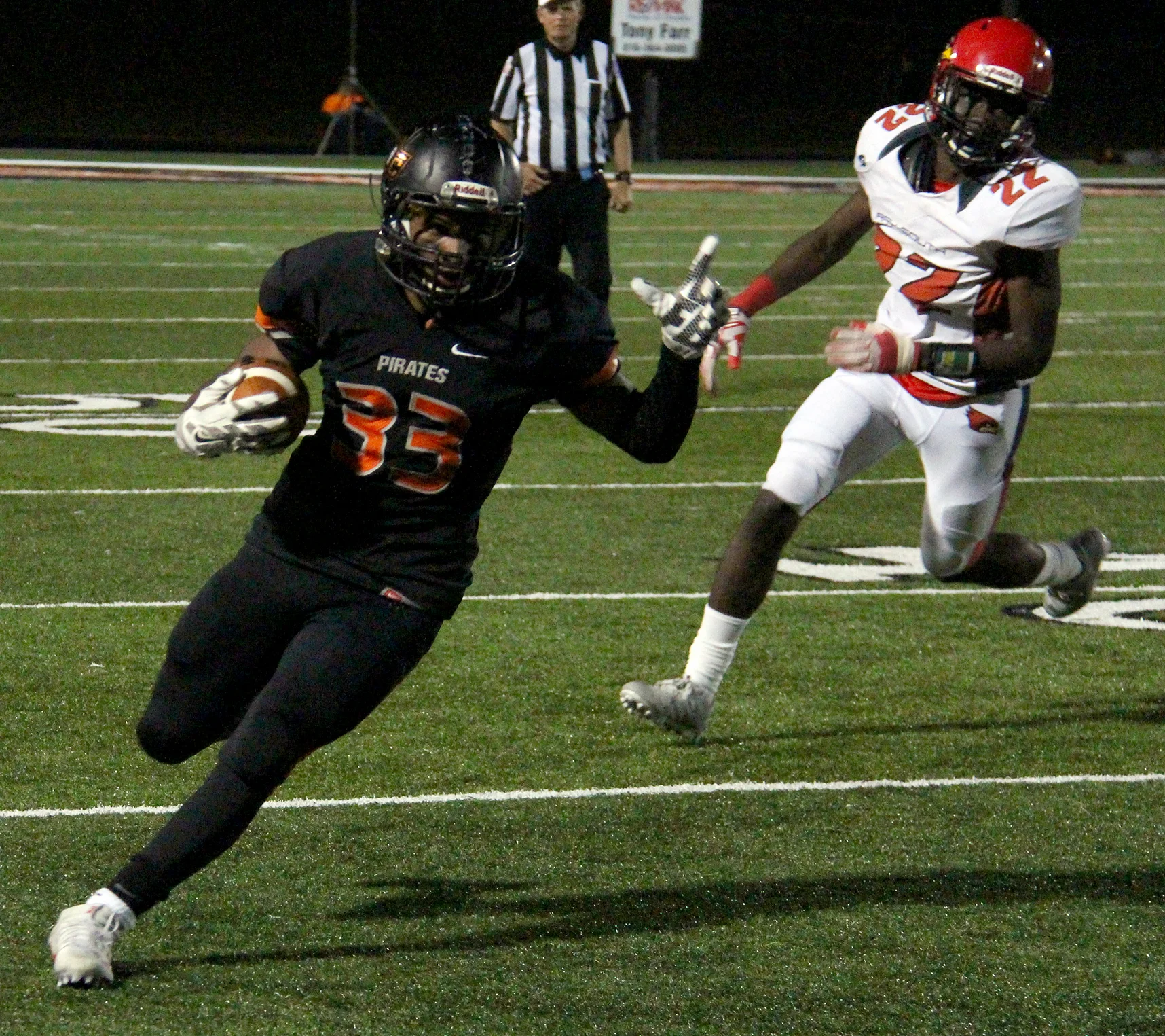 Two familiar names reemerged with big games to ensure the stretch ended with a win Friday, Sept. 30. Pirates senior running back Michael McNair continued to be the most consistent performer with two more rushing touchdowns while inching closer to the 1,000-yard mark for the season, but senior wide receiver TJ Guillory caught a touchdown pass while senior safety Kevin Neal grabbed a pair of interceptions in a 30-9 win against Raytown South in an important Suburban Conference Blue Division matchup at Pirate Stadium.