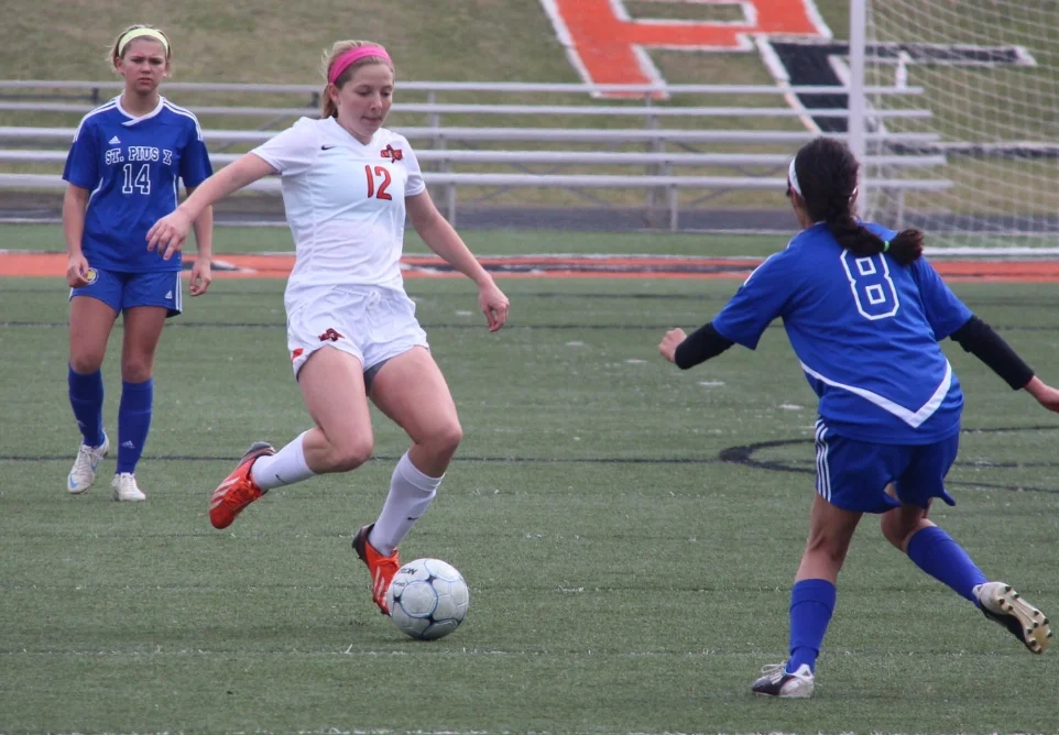 Platte County defender Amanda Sullivan (12) looks to make a pass in a 2015 game against St. Pius X.