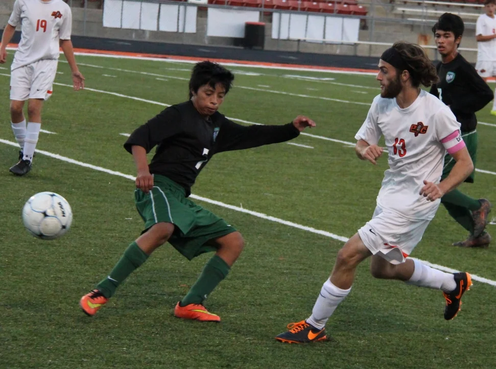 Platte County senior defender Zach Rolofson makes a pass in a game against St. Joseph Lafayette this past season at Pirate Stadium.