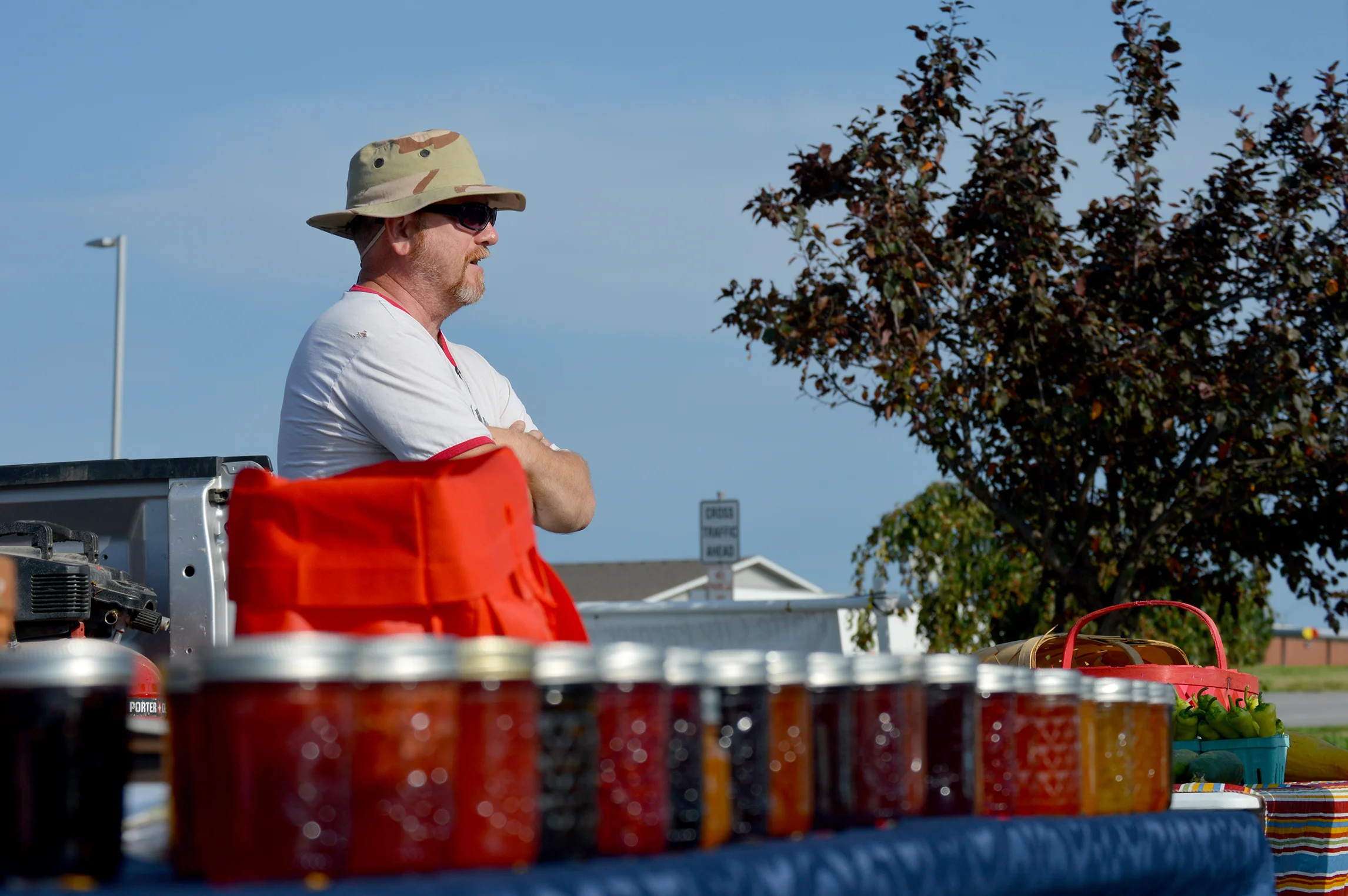 “For the first year, we did a little produce and a few jams; then we decided to dump the produce and just do jams,” said Dave Hinkle, a grower from Weston, Mo., standing over a table with nearly 300 jars of freshly-canned jam. “We grow a little for ourselves and the rest of it we bring here.”