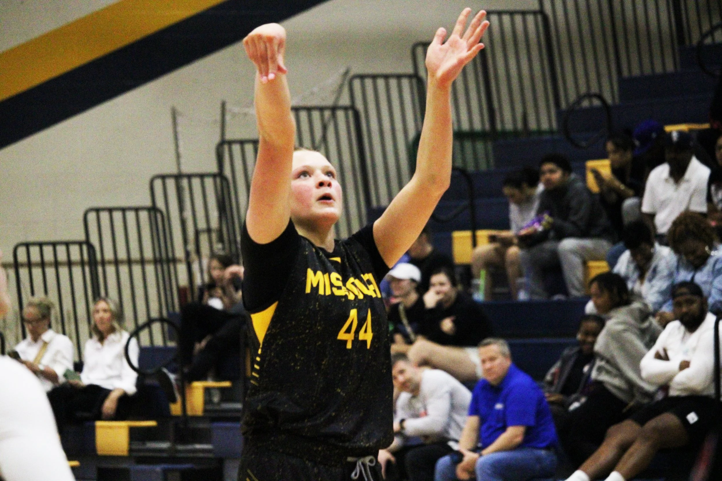 After earning a pair of track and field medals earlier in the day at the Kearney Classic Invitational, including a first-place finish in the long jump, Parker contributed on the court in the first quarter with a rebound before racing the other way to hit a mid-range jumper, giving Missouri a 22-14 lead. Parker later had a third-quarter assist to Wand and a fourth-quarter steal.