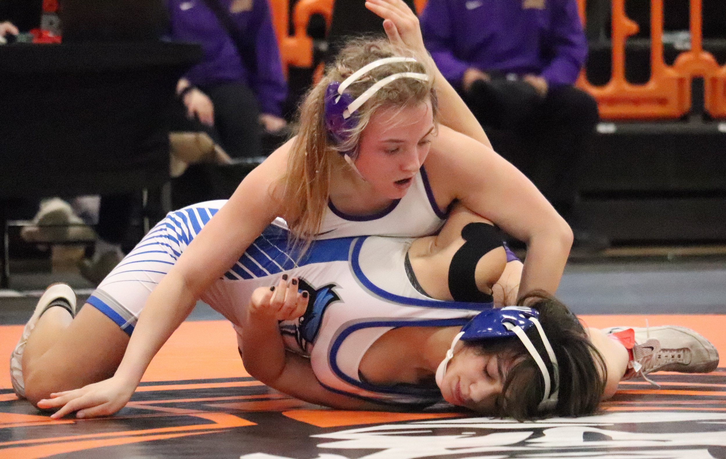 With a rematch of last year’s championship match against Raytown’s Ulalia Butler, which Monaco lost in an 8-6 decision, the junior came back prepared to strike with vengeance. Butler scored the first points of a high-scoring affair with a takedown before Monaco turned the tables with an escape and takedown of her own.