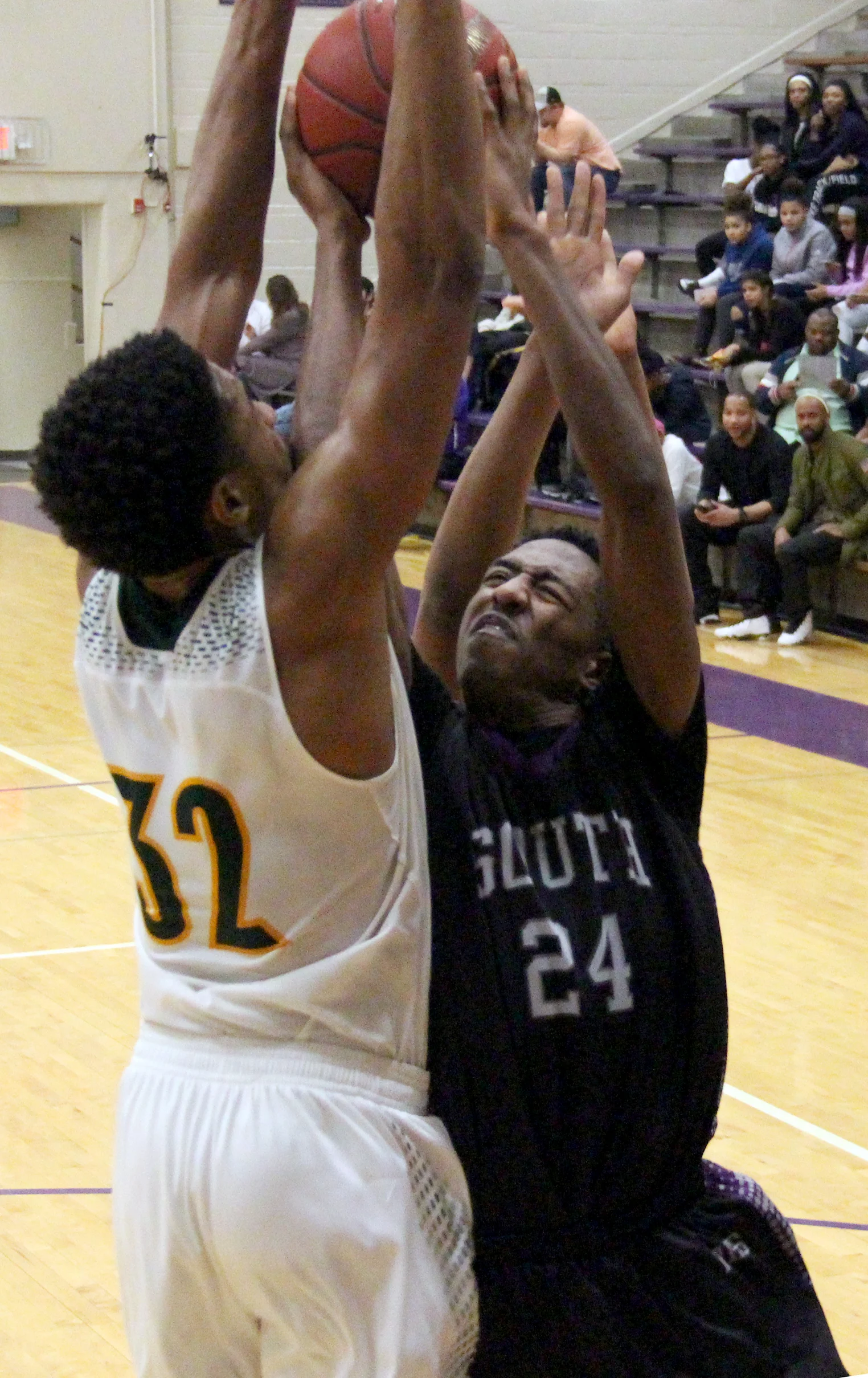 Park Hill South junior Saadique Perkins (24) goes up for a shot against Rock Bridge in the North Kansas City Invitational championship game Friday, Jan. 20 in North Kansas City, Mo.