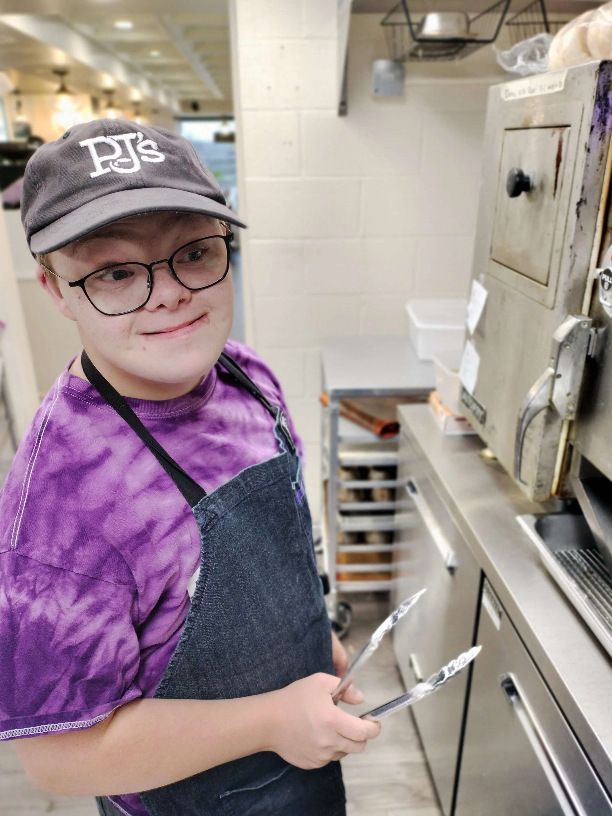 Bryant works as Tucker’s job coach, and his work in the kitchen includes, washing dishes, making sandwiches, wiping tables and whatever else is asked. Bryant said her son flourishes at PJ’s and sometimes he passes food through the drive-through and to customers in the lobby, which she says he absolutely loves. Bryant’s role as his job coach includes helping him learn the work and what is expected.
