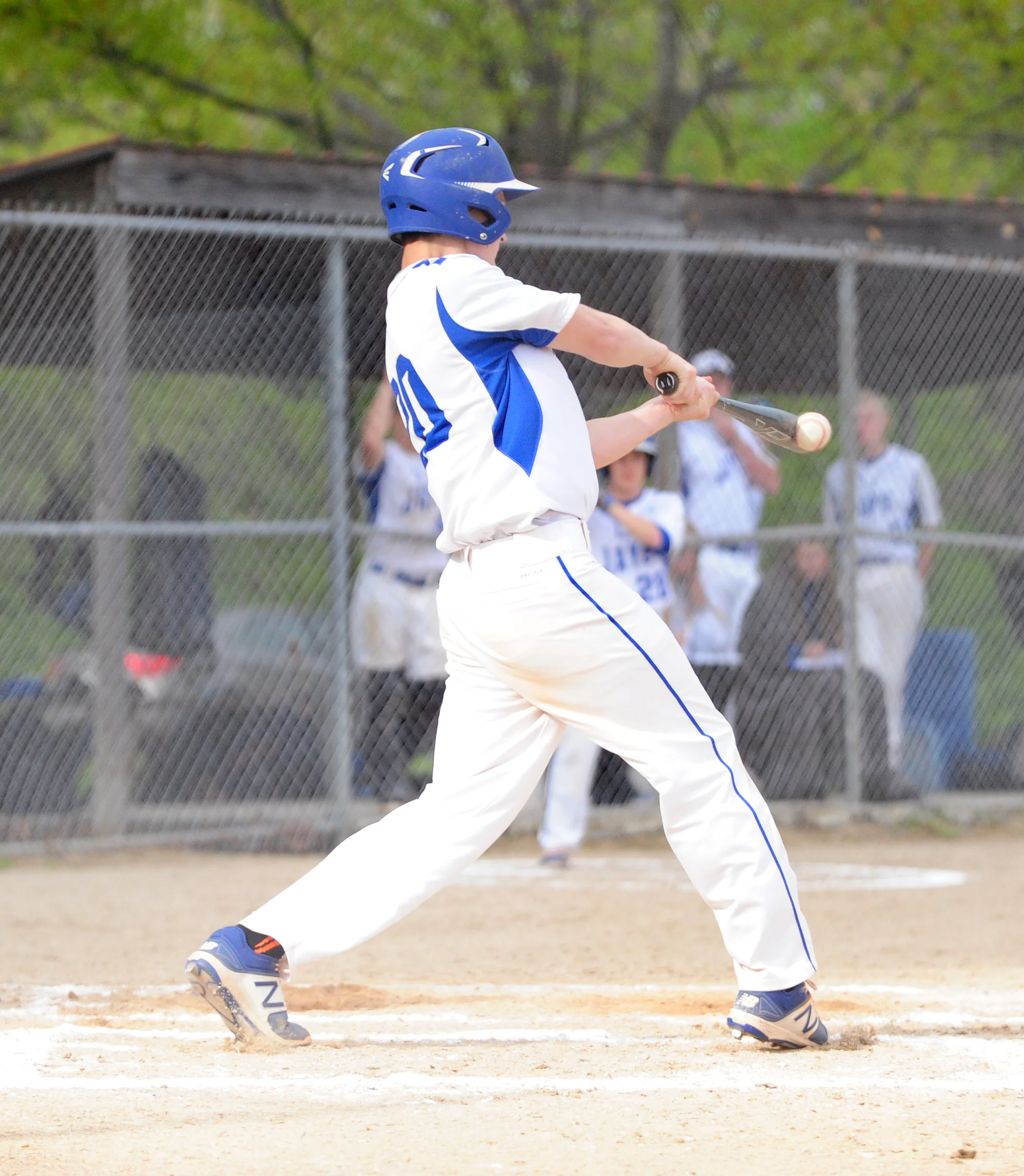 West Platte sophomore Noah Johnson makes contact with a pitch during game one of a doubleheader with Plattsburg on Thursday, April 27 in Plattsburg, Mo.