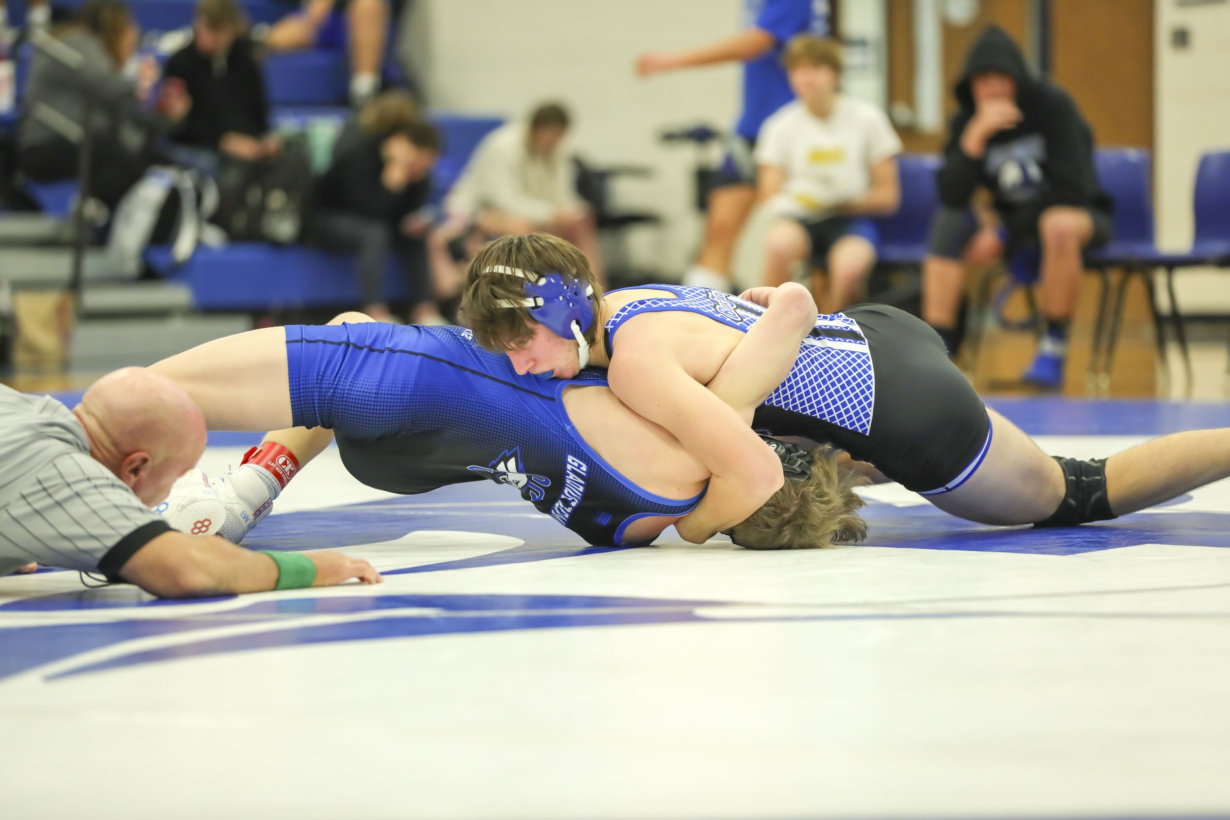 West Platte 138-pound wrestler Jhett Chandler won both of his matches in the triangular against St. Joseph’s Central and Summit Christian Academy, including a win by fall over Seth Stricklin on senior night on Jan. 18.