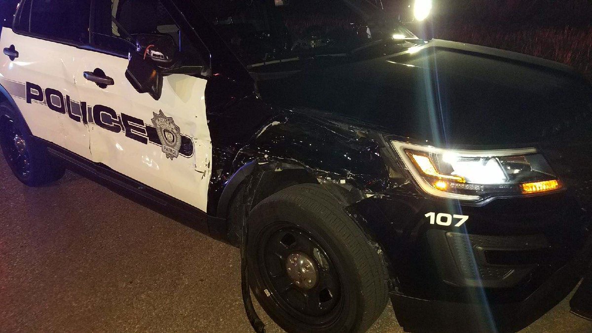 At that point, the driver went into reverse again, striking the police cruiser and drove off.
